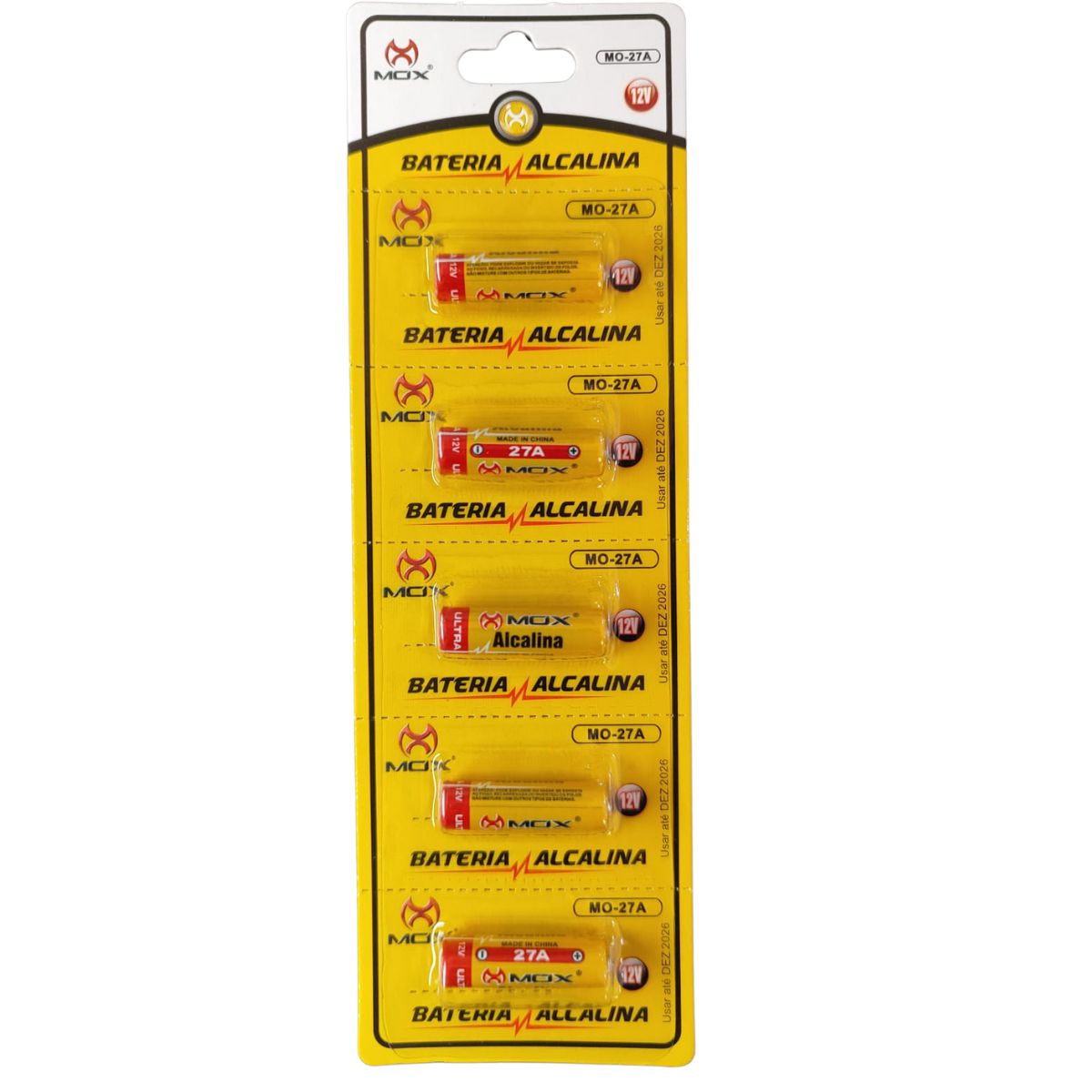 CARTELA COM 5 BATERIAS ALCALINAS 12V A27 MOX – DESEMPENHO E CONFIABILIDADE