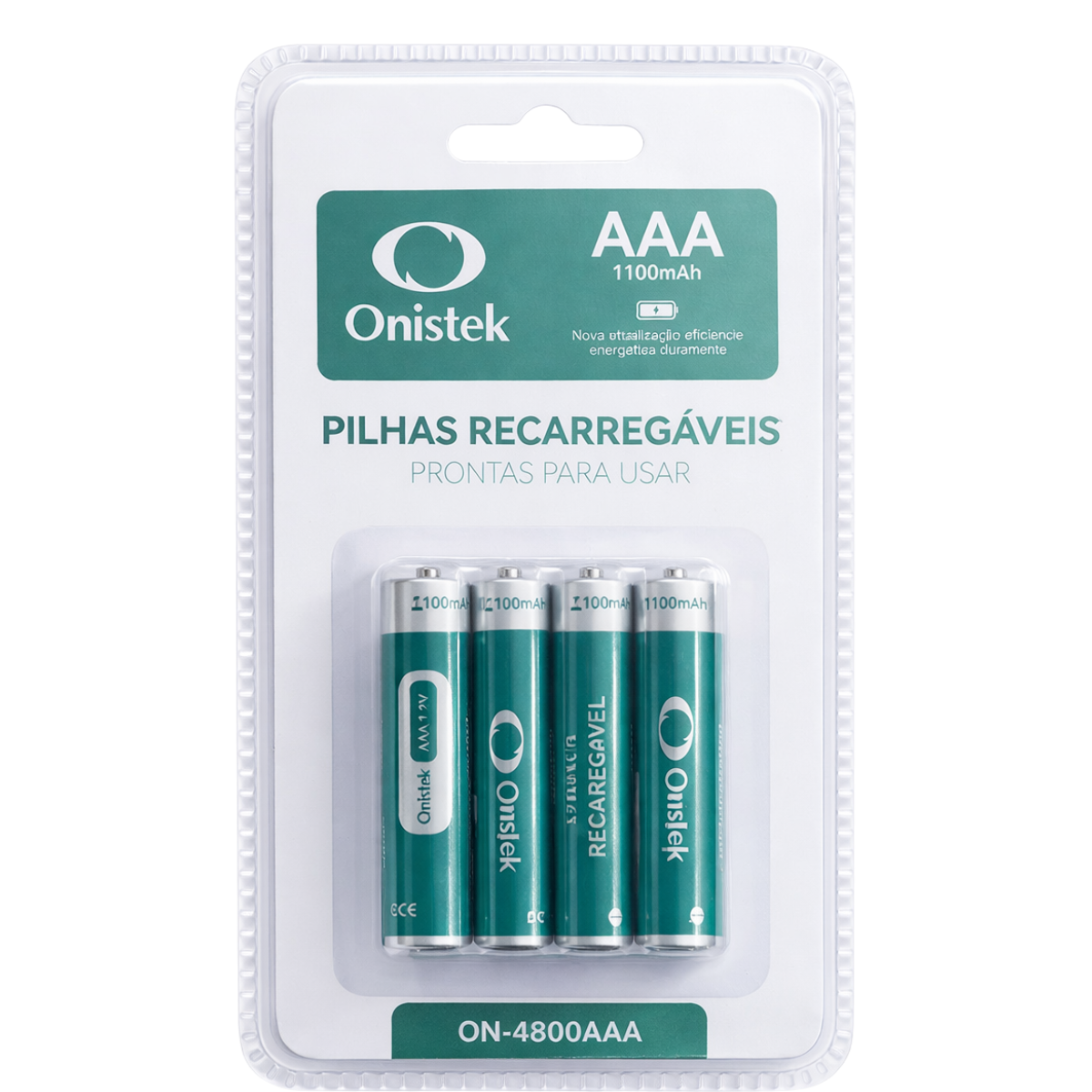 BLISTER COM 4 PILHAS RECARREGÁVEIS AAA 1100MAH ONISTEK